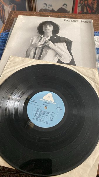 Patti Smith - Horses. Sida 1 inkluderar låtarna: Gloria: in excelsis deo, Gloria (version), Redondo Beach, Birdland, Free Money. Producerad av John Cale.