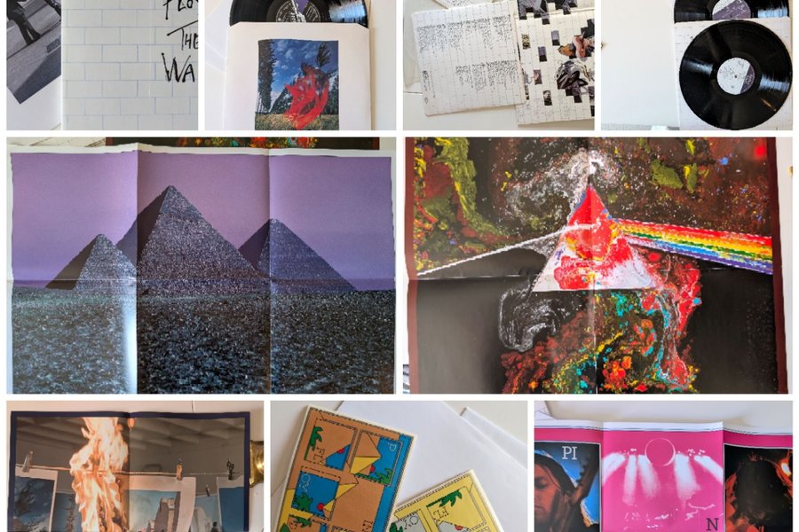 Två klassiska album från Pink Floyd: The Wall, Wish You Were Here.. Alla skivor är i LP-format och kommer med sina originalkonvolut och tillhörande inlägg, inklusive texthäften och affischer. Även en affisch från Dark Side of the moon medföljer.