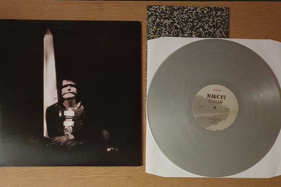 NMC17 - Scream vinylskiva. Skivan är grå och kommer med ett omslag som har en bild på en person med förbundna ögon framför en obelisk. Inkluderar även ett litet svartvitt ark med mönster.