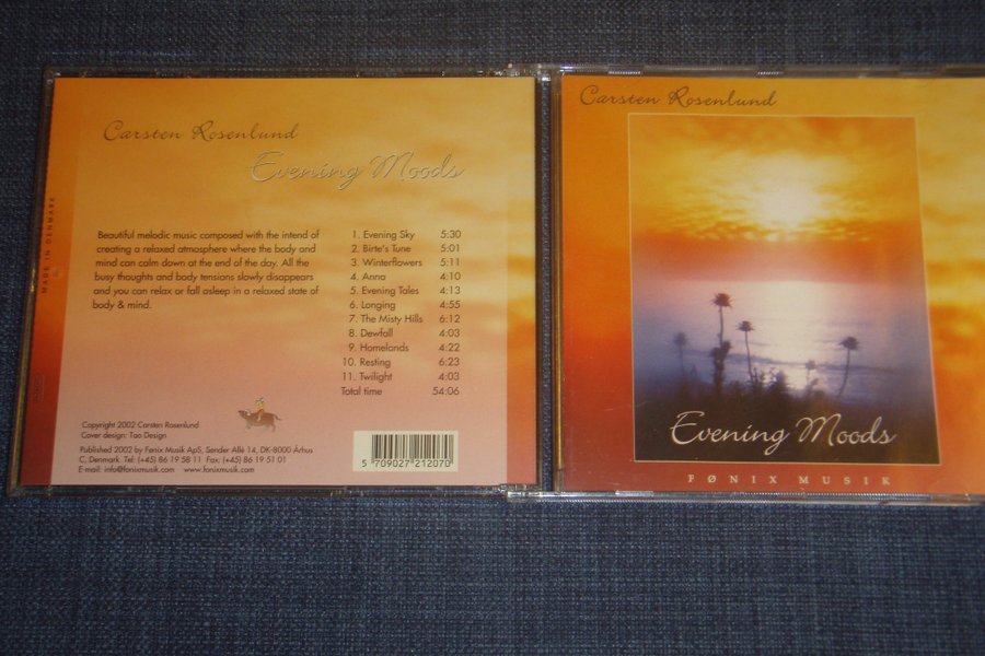Avkopplande musik-CD med Carsten Rosenlunds "Evening Moods". Perfekt för att skapa en lugn atmosfär och varva ner. Innehåller 11 spår med en total speltid på 54:06.