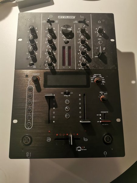 Reloop IQ2+ DSP Mixer. Funktioner inkluderar XFader FX, FX-selection och Ch-selection. Glapp i fx knappen, något för den händige, därav det låga priset.