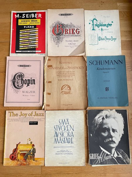 Säljer äldre nothäften/pianonoter i varierande skick, ärvda av morföräldrar födda på 20-talet.