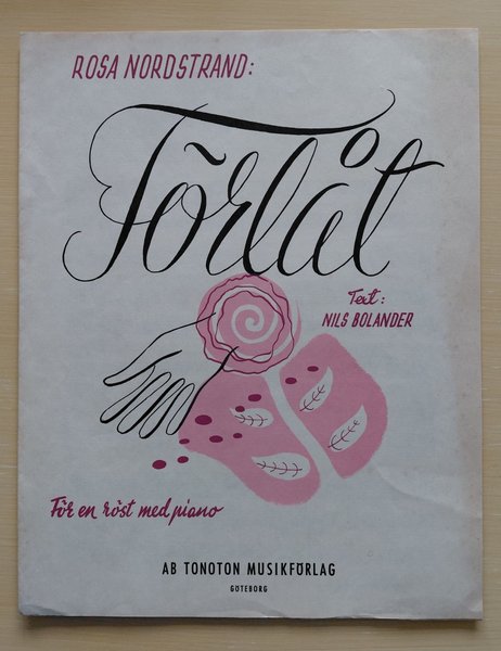 Förlåt. Tonoton 1946. Lösnot för sång / piano. Vacker, vemodig solosång av Rosa Nordstrand med texy av Nils Bolander.