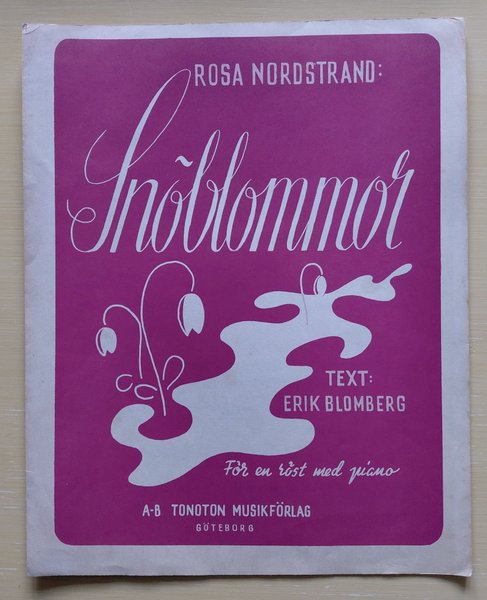 Snöblommor. Tonoton 1946. Lösnot för sång / piano. Solosång komponerad av Rosa Nordstrand.
