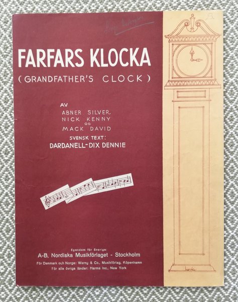 Farfars klocka. Nordiska Musikförlsaget. Copyright 1934, tryckår saknas.