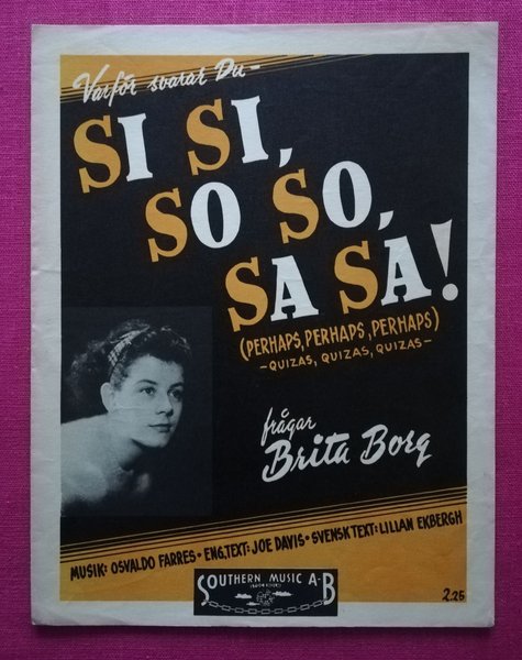 Si si, so so, sa sa. Southern Music 1949. Rhumban "Quizas...". Lösnot för sång / piano. Britta Borg.