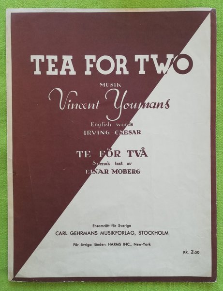 Tea for two. Gehrmans 1948. Lösnot för sång / piano.