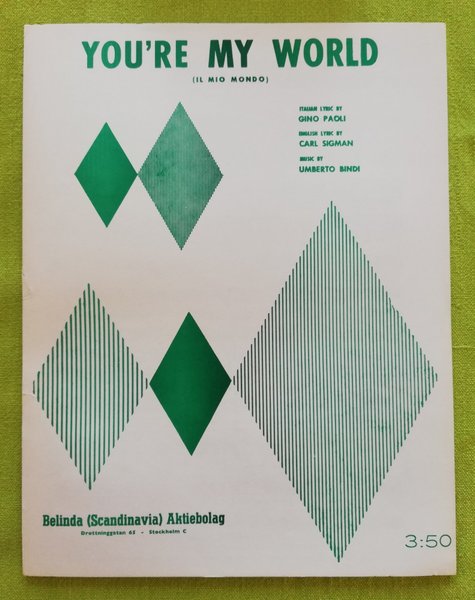 You´re my world / Il mio Mondo. Belinda 1964. Lösnot för sång / piano, engelsk och italiensk text.