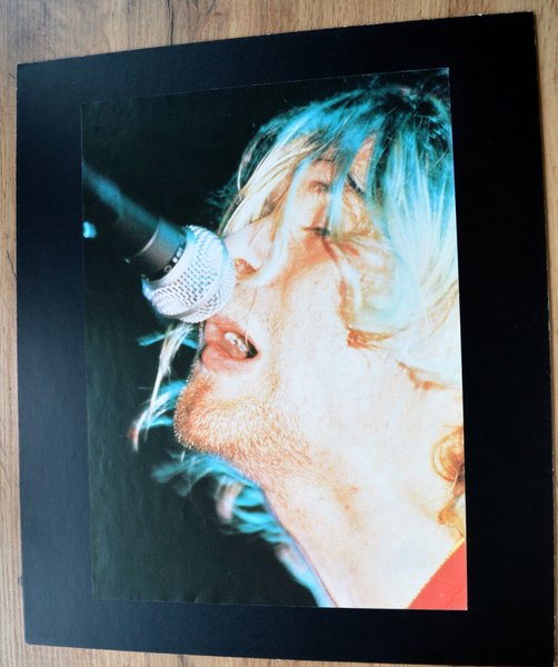 Poster Nirvana Kurt Cobain. Posterns mått: 29 x 21 cm limmad på en pappskiva ( 30 x 35 cm).