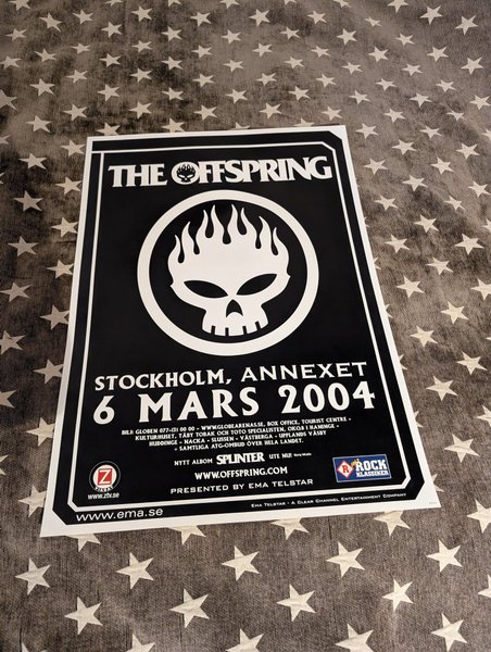 Affisch med The Offspring från konserten i Stockholm, Annexet den 6 mars 2004. Affischen annonserar även bandets album "Splinter".