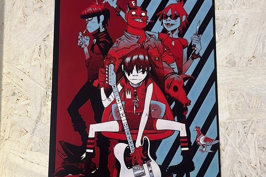 Affisch med Gorillaz motiv.