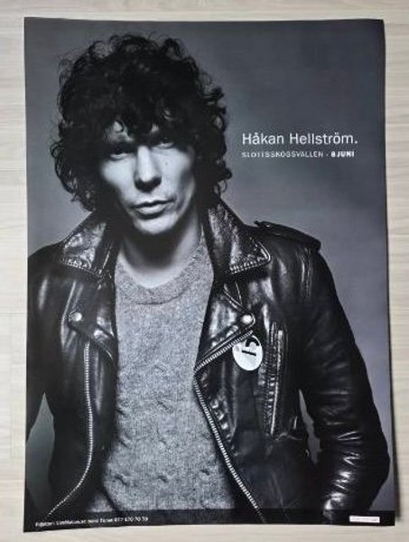 Affisch med Håkan Hellström. Bilden är svartvit och föreställer Håkan Hellström i skinnjacka och tröja. Texten på affischen lyder "Håkan Hellström. Slottsskogsvallen - 8 Juni".