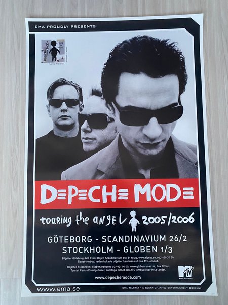 Affisch för Depeche Modes "Touring the Angel" 2005/2006. Konserter i Göteborg (Scandinavium 26/2) och Stockholm (Globen 1/3). Affischen annonserar även albumet "Playing the Angel" som släpptes 17 oktober.