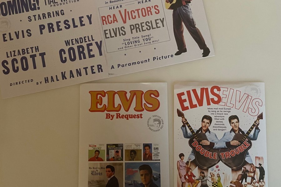 Affischer med Elvis Presley filmer: Loving You, Double Trouble och By Request.