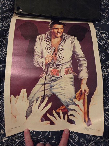 En poster med Elvis Presley. Postern är skapad av Kathy Wyatt och tryckt i England.