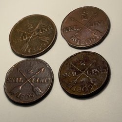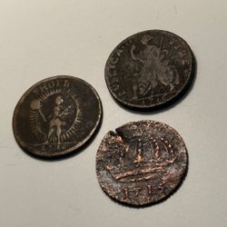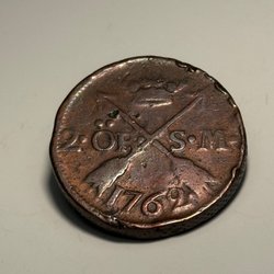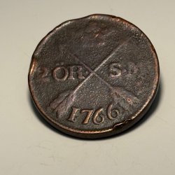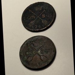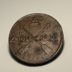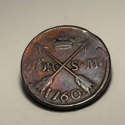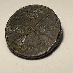 En antik kopparplatta med årtalet 1626 präglat. Plattan har även en stämpel med ett värde.