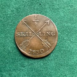 Detta är ett antikt mynt från Sverige, präglat år 1803. Myntet har ett nominellt värde av 1/4 skilling.
