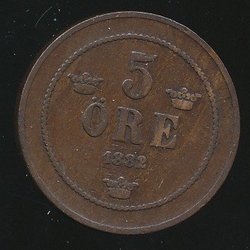 1882/ 81 5 öre Oskar II kv 1 se bild