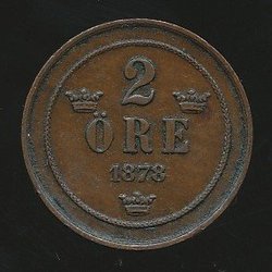 1877 Lång text 2 öre oskar II kv1/1+ se bil