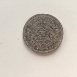 En vacker 1 krona från 1904 med Oscar II:s porträtt. Denna historiska valuta har inskriptionen 'Sveriges och Norges Konung'. På andra sidan syns valören '1 KRONA' samt årtalet '1904'.