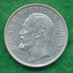 En 1 Krona från 1906. Präglad under Oscar II Sveriges Konung. Valören är 1 krona.
