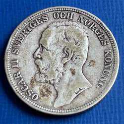 Silvermynt präglat 1898 med valören 2 kronor.