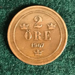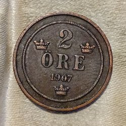 Ett 2 Öre mynt från 1907.