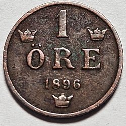 Ett 2 Öre mynt från 1905. På myntet står det "2 ÖRE" och "1905".