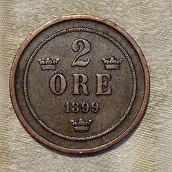 Ett 2 Öre mynt från 1899.
