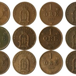 1 öre 1874 och 1877 lång text. Båda med fin färg och kvalitet 1 (4).