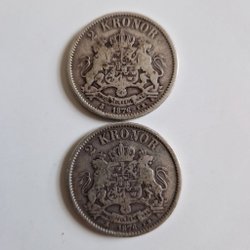 Detta är en 2 Kronor från 1876. Föreställer Oscar II, Sveriges och Norges Konung.