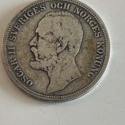 Ett samlarobjekt från 1904 med ett nominellt värde av 2 kronor. Föreställer Oscar II, Sveriges och Norges Konung.