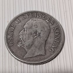 Ett samlarobjekt från 1904 med Oscar II av Sverige och Norge. Valören är 2 kronor.