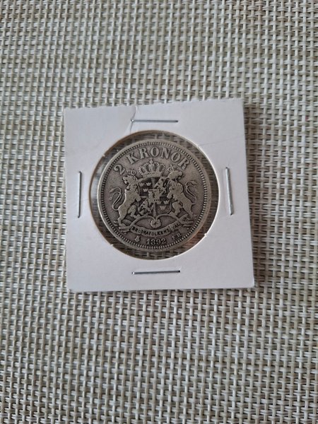 Ett samlarobjekt från Sverige, präglat år 1892 med ett värde av 2 Kronor.