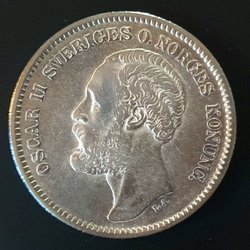 Detta är en 1 Krona från 1883. Framsidan visar Oscar II och texten "OSCAR II SVERIGES OCH NORGES KONUNG". Baksidan visar riksvapnet med texten "1 KRONA" och "BRÖDRAFOLKENS VÄL" samt årtalet 1883.