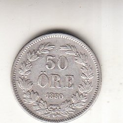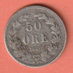 Detta är en äldre svensk 50 öre från 1880.