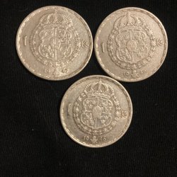 Betalning inom de närmaste dagarna efter inropat objekt, så att köpet kan registreras och förpackas för utskick. Inga mynt skickas innan betalning skett har sex bankdagar passerat anses köpet som ogiltigt och läggs ut igen för Traderas kunder. Är det så att ni bjudit på flera olika objekt så kan ni meddela detta så att Samfrakt kan ske. Lotter under 500:- porto 24:- om det inte väger väldigt mycket. Över 500:- skickas alltid mynt/mynten med rekommenderat och spårbart porto Postnord 107:- om inte värdet överskrider 6´000:- så får SAGA-77 ge pris efter inropat objekt. Eller från utlandet då tillkommer de kostnaderna som Postnord erbjuder. Kvaliteten är en uppskattning från säljaren så som han tolkar det, och säljs därefter (1628)