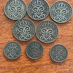 Under regeringstiden av Gustaf V mellan 1907 och 1950 präglades många unika svenska mynt, som nu går att hitta på Tradera. Att köpa dessa mynt hos oss ger samlare chansen att spara pengar, göra unika fynd och samtidigt värna om miljön. Buda hem svenska mynt på auktion eller köp direkt till fast pris!