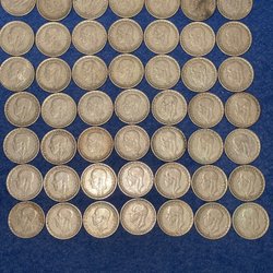 En samling silvermynt från Sverige med Gustaf V. Blandade årtal mellan 1942-1948.