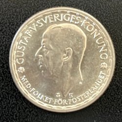 Ett svenskt samlarobjekt med Gustaf V, präglat 1944. Valören är 2 KR.
