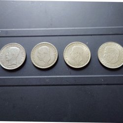En samling av svenska mynt. Inkluderar 25 öre och 10 öre mynt från olika årtal. Vissa mynt har årtal som 1920, 1940, 1941, 1942, 1946, och 1947.
