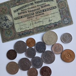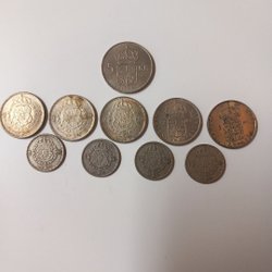 En samling av svenska mynt från olika årtal och valörer. Inkluderar mynt från 1940, 1947, 1973 och 1977.