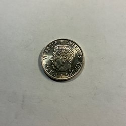 Silvermynt från 1943 med valören 1 krona. Motiv av Gustaf V Sveriges Konung.