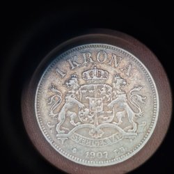 En svensk 5 öre. Årtalet är 1927. Kv 1+/01