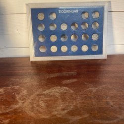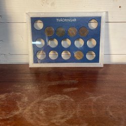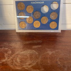 Samling av ettöringar presenterade i en ram. Innehåller årtal från olika årtionden. Myntkassetten är i bästa skick enligt bilder se bilder för egen bedömning av skick och vad du köper.