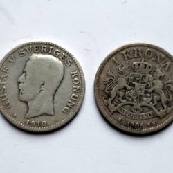 Samling av 25 öre. Årtalen inkluderar 1910, 1912, 1914, 1916, 1919 och 1927.