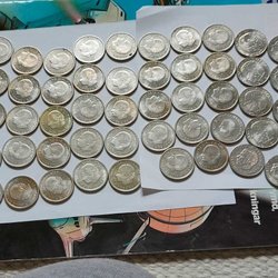 En samling av fem stycken svenska mynt från åren 1912 till 1919.