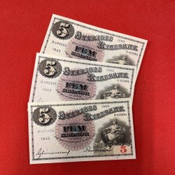 Tre stycken 1 krona från 1942 med Gustaf V.