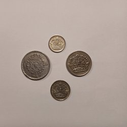 Silvermynt med årtal och värde angivet. 1947