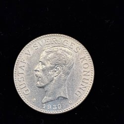 Silvermynt med Gustav V, 1936. Valör: 5 kr.